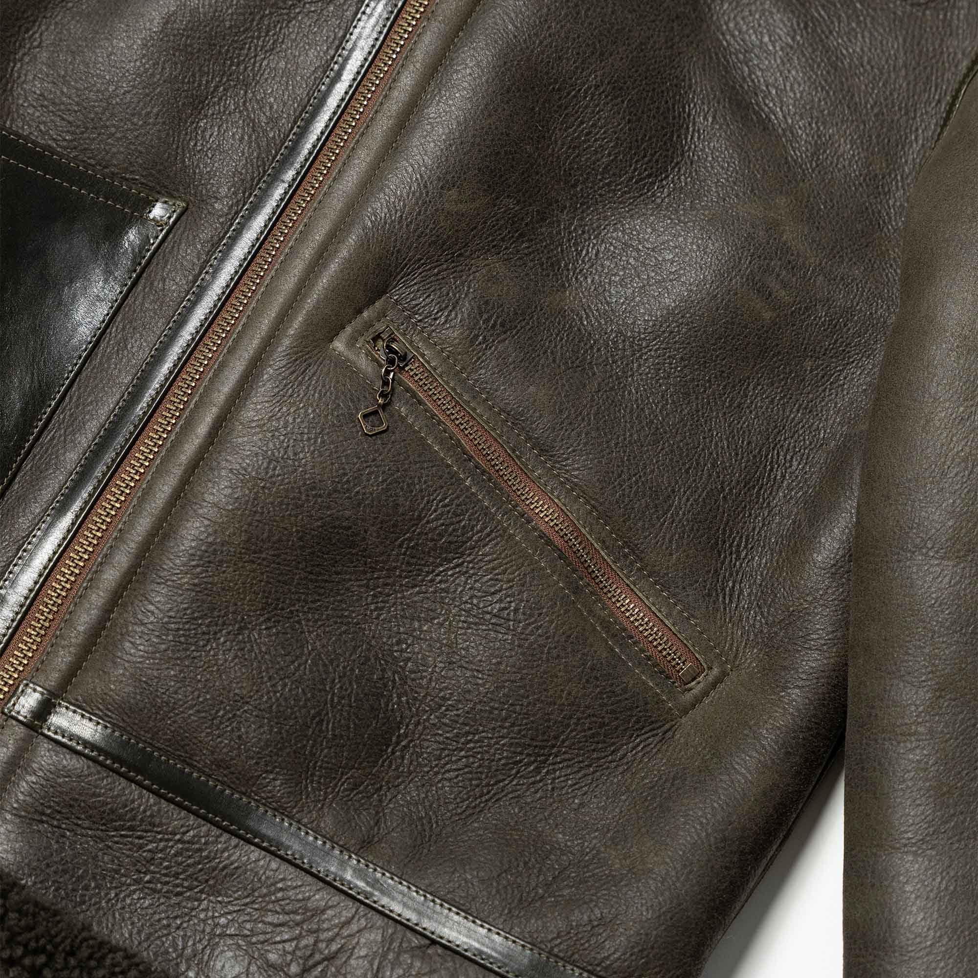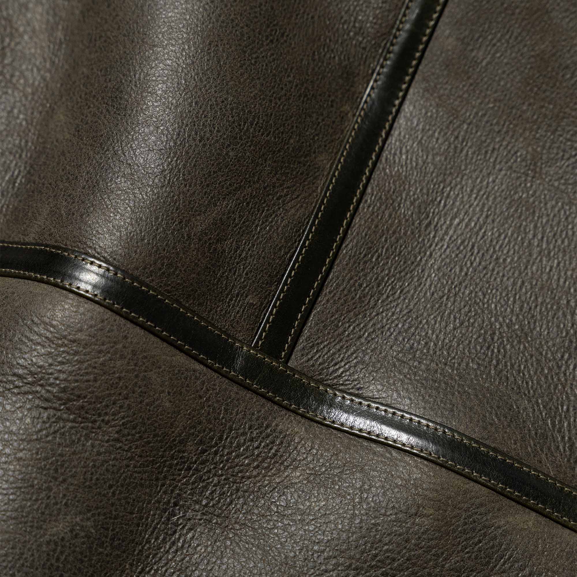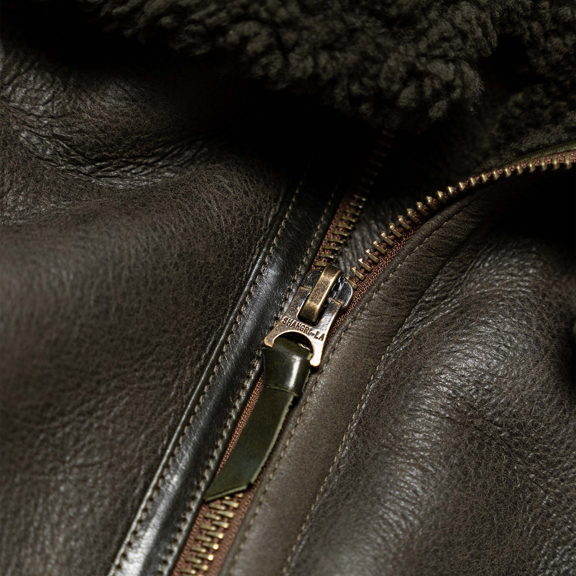 Inspired by early 1940s type B-3 Flight jackets from the Second World War and revisited with a unique Italian touch, the “Aviatore” B-3 Shearling Jacket represents an authentic garment made of Italian Shearling Sheepskin reinforced with leather trimmings in Full Grain Veg Tanned Vacchetta by Carlo Badalassi®, one the best Tanneries in the world.