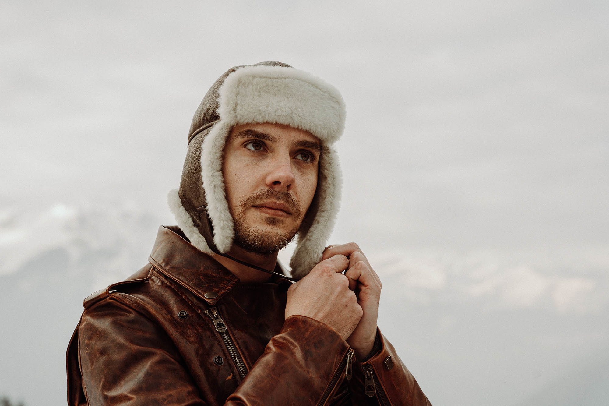 Inspired by early 40s type B-3 Flight Hats from the Second World War and revisited with a unique Italian touch, the “Aviatore” B-3 Shearling Hat represents an authentic garment made of Italian Shearling Sheepskin reinforced with leather trimmings in vegetable tanned Lambskin from Tuscany (Italy).
