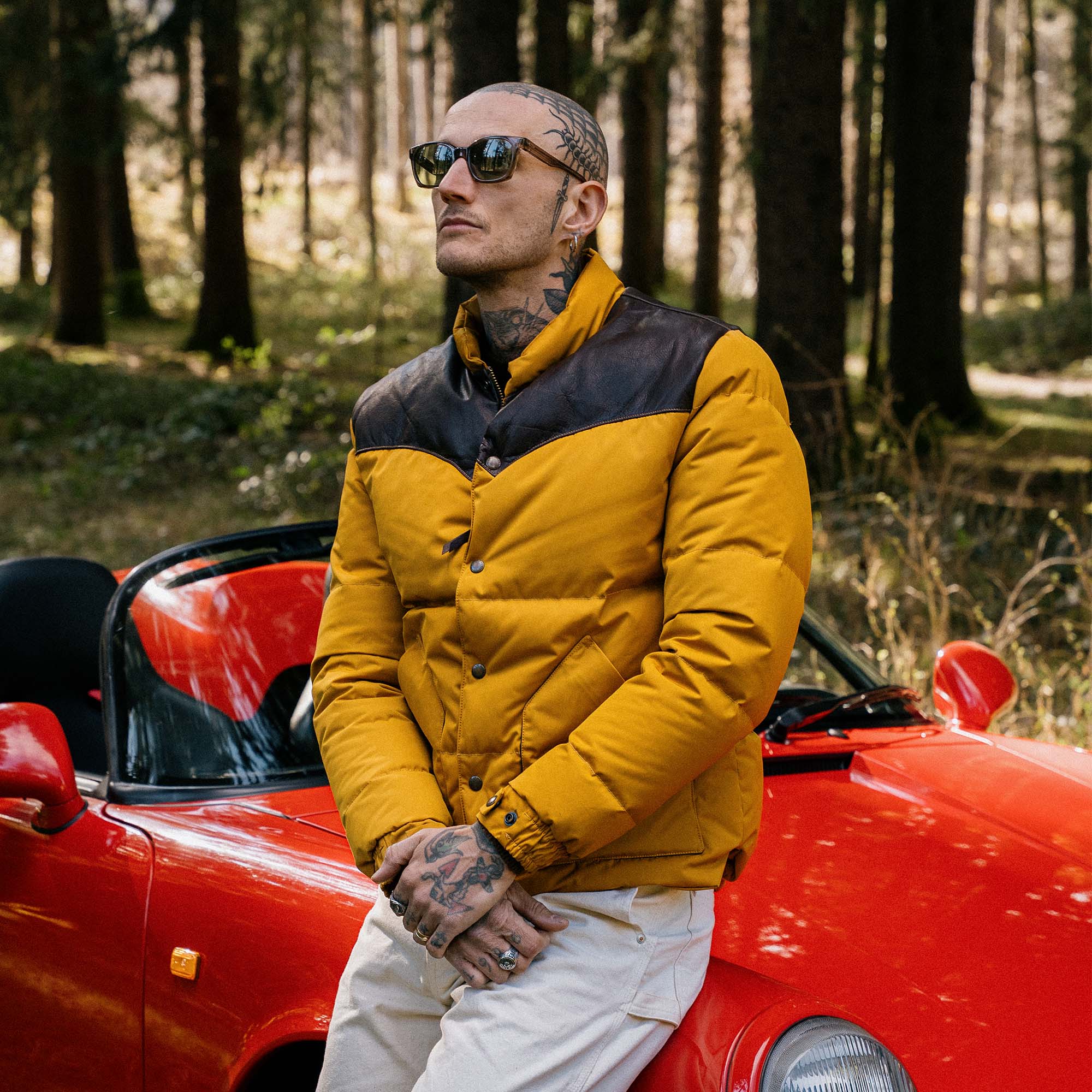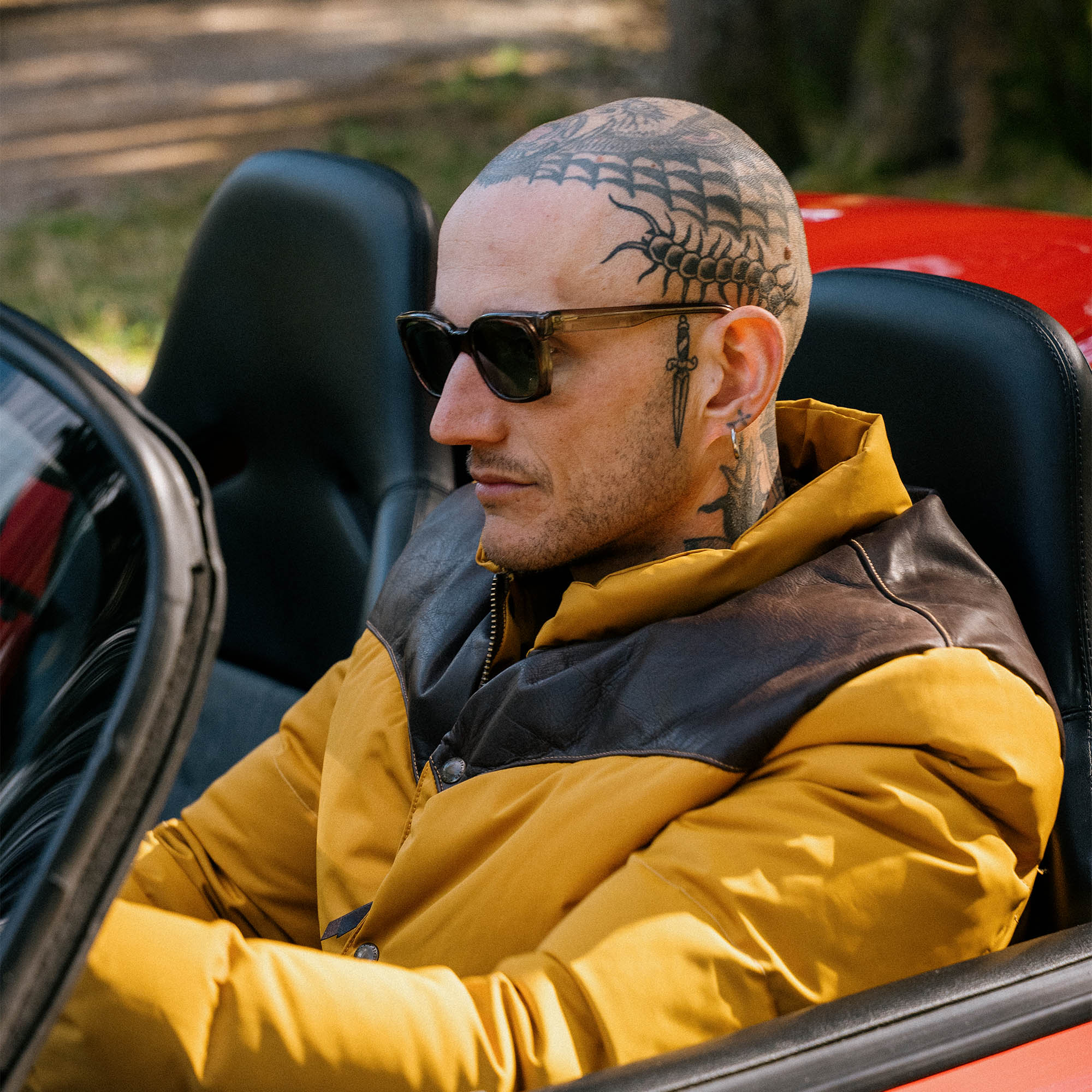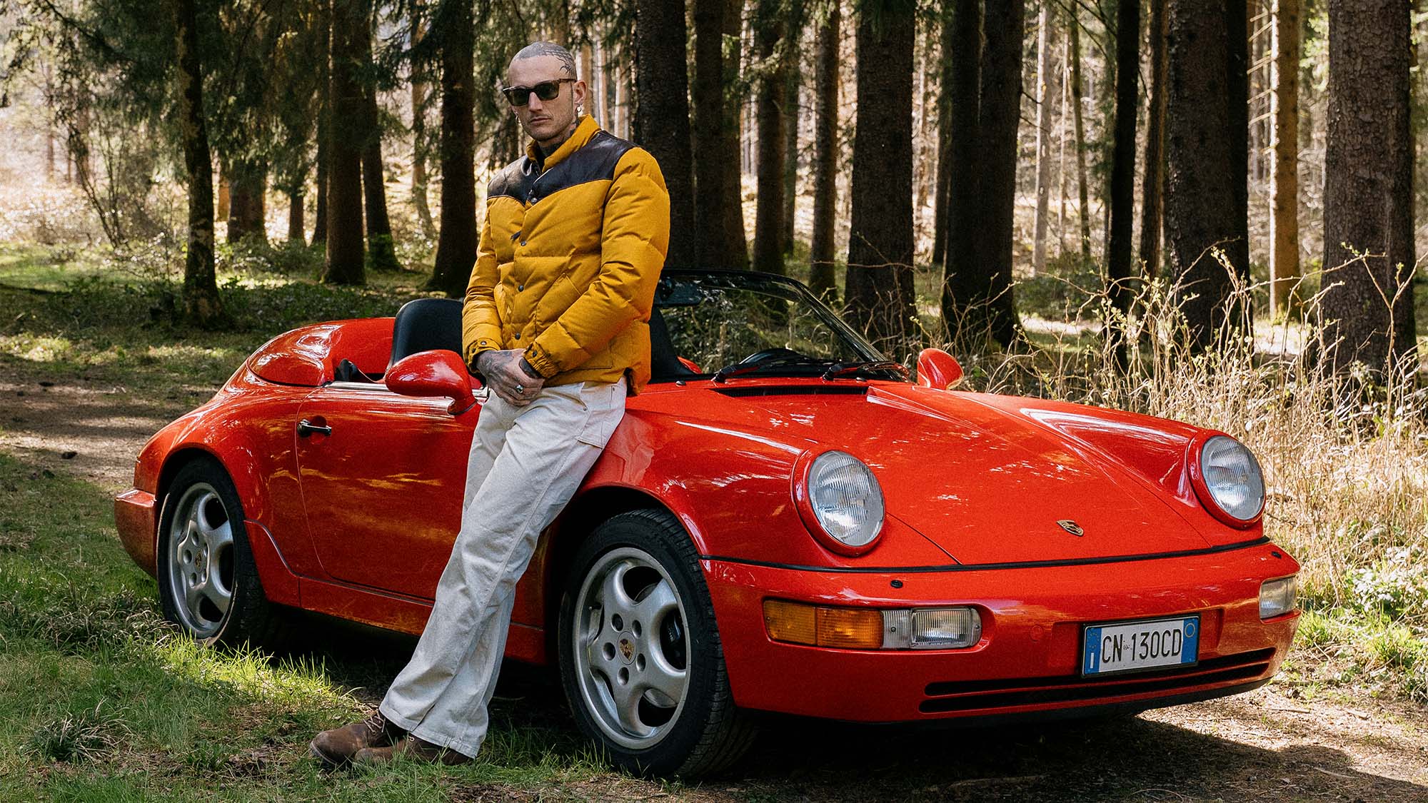 • Michele (with a Porsche 911 Speedster) is 184cm and 74kg and he’s wearing a size M.
