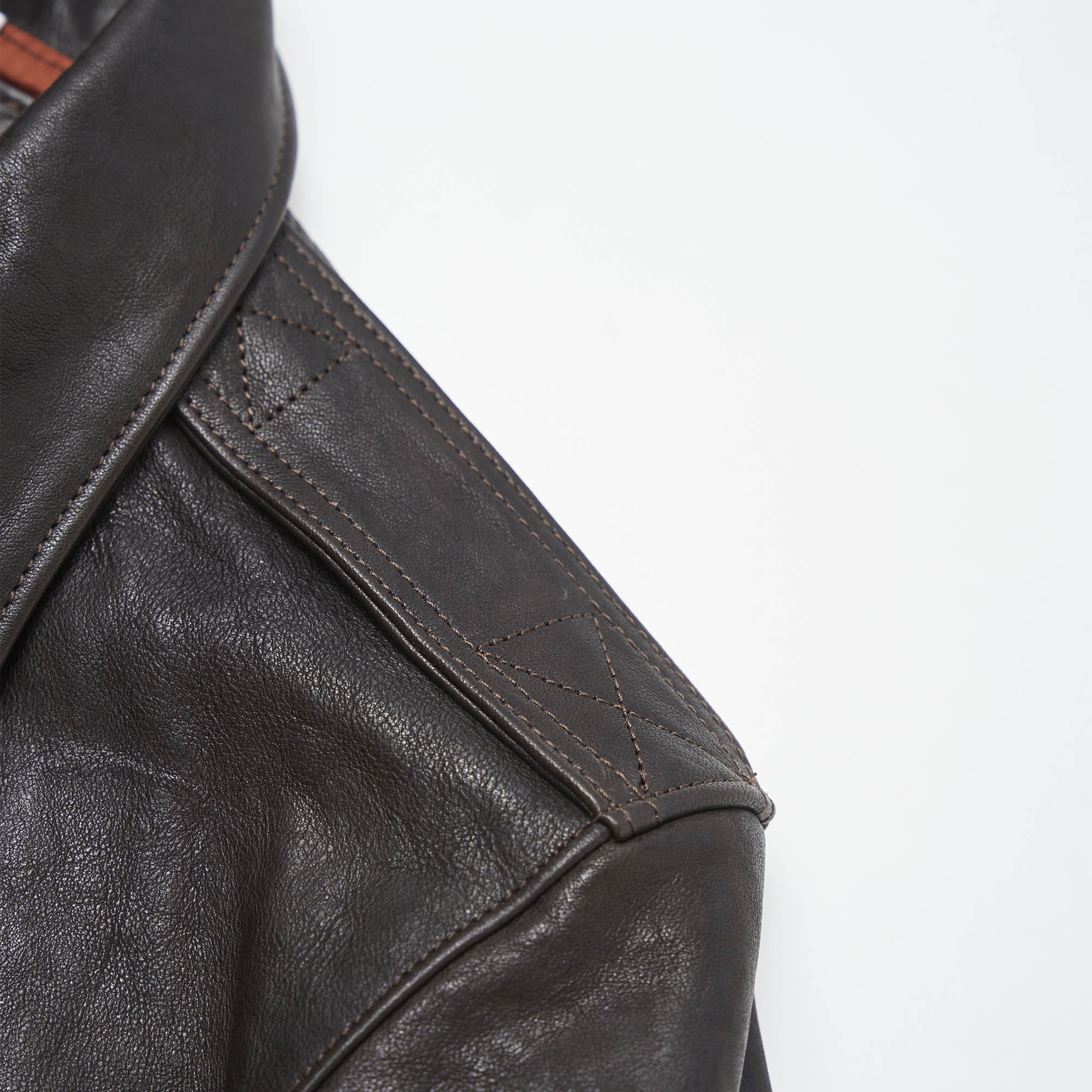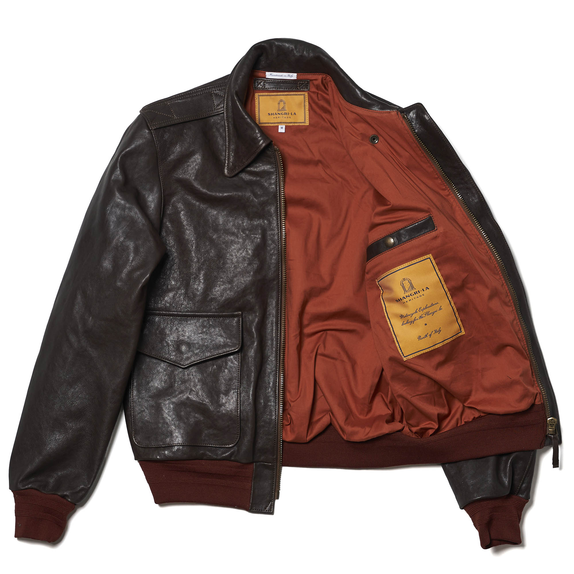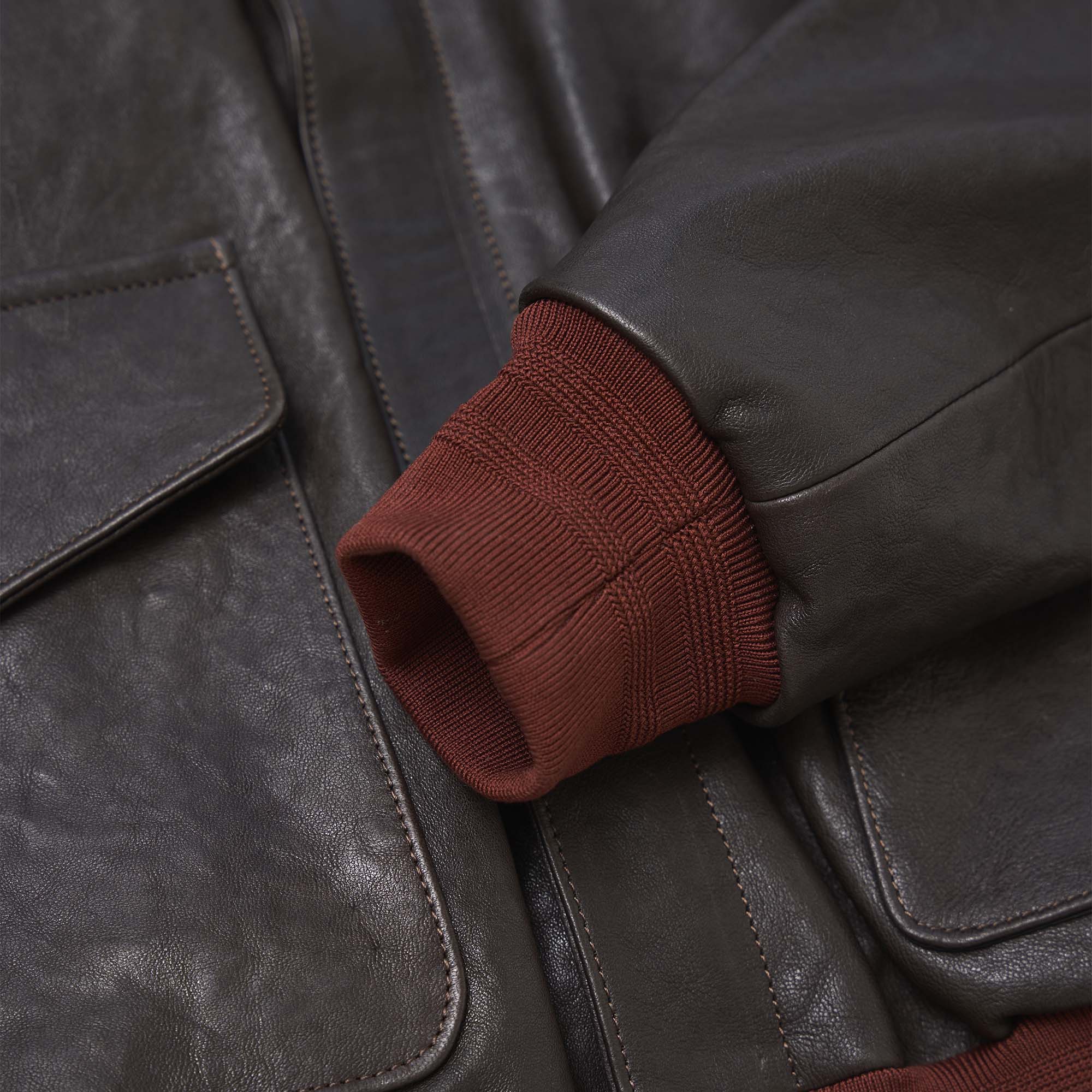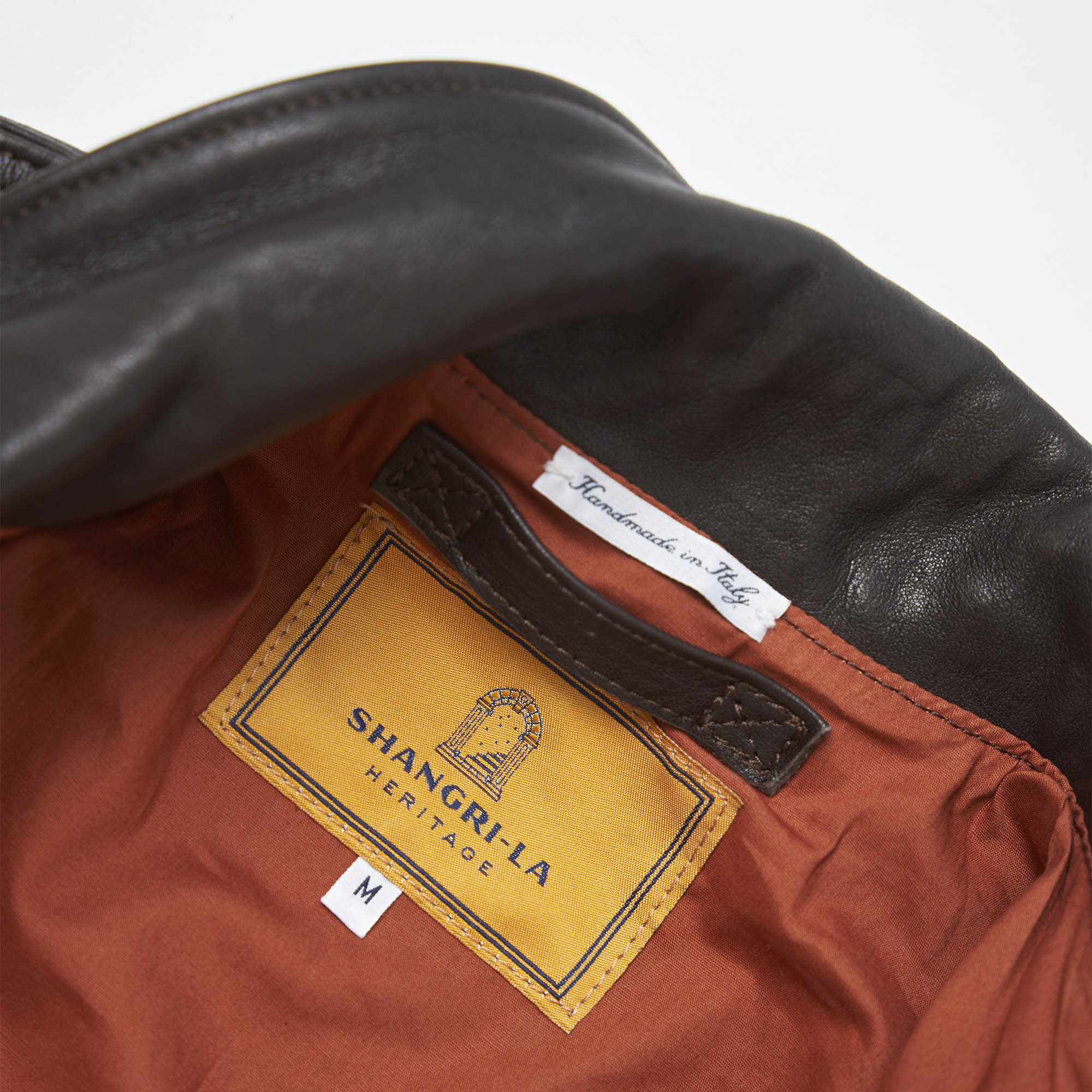 Inspired by 1940s Flight Jackets from WWII and revisited with a unique Italian touch, the “Don Gentile” A-2 Flight Jacket represents an authentic garment made of vegetable tanned full grain Lambskin from Tuscany (Italy).