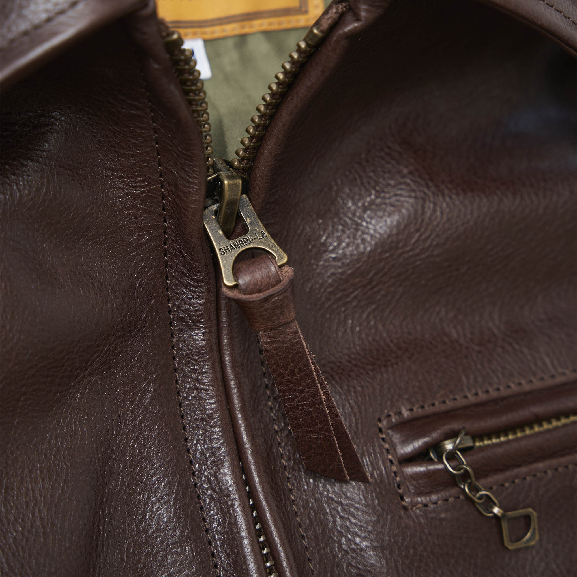 Thickness is around 1,2 mm, making the Varenne an outstanding and high-end premium jacket. Natural leathers like the Carlo Badalassi® “Vacchetta” have their own distinctive character and slight differences in texture, grain, scratches and color tone are signs of its authenticity.