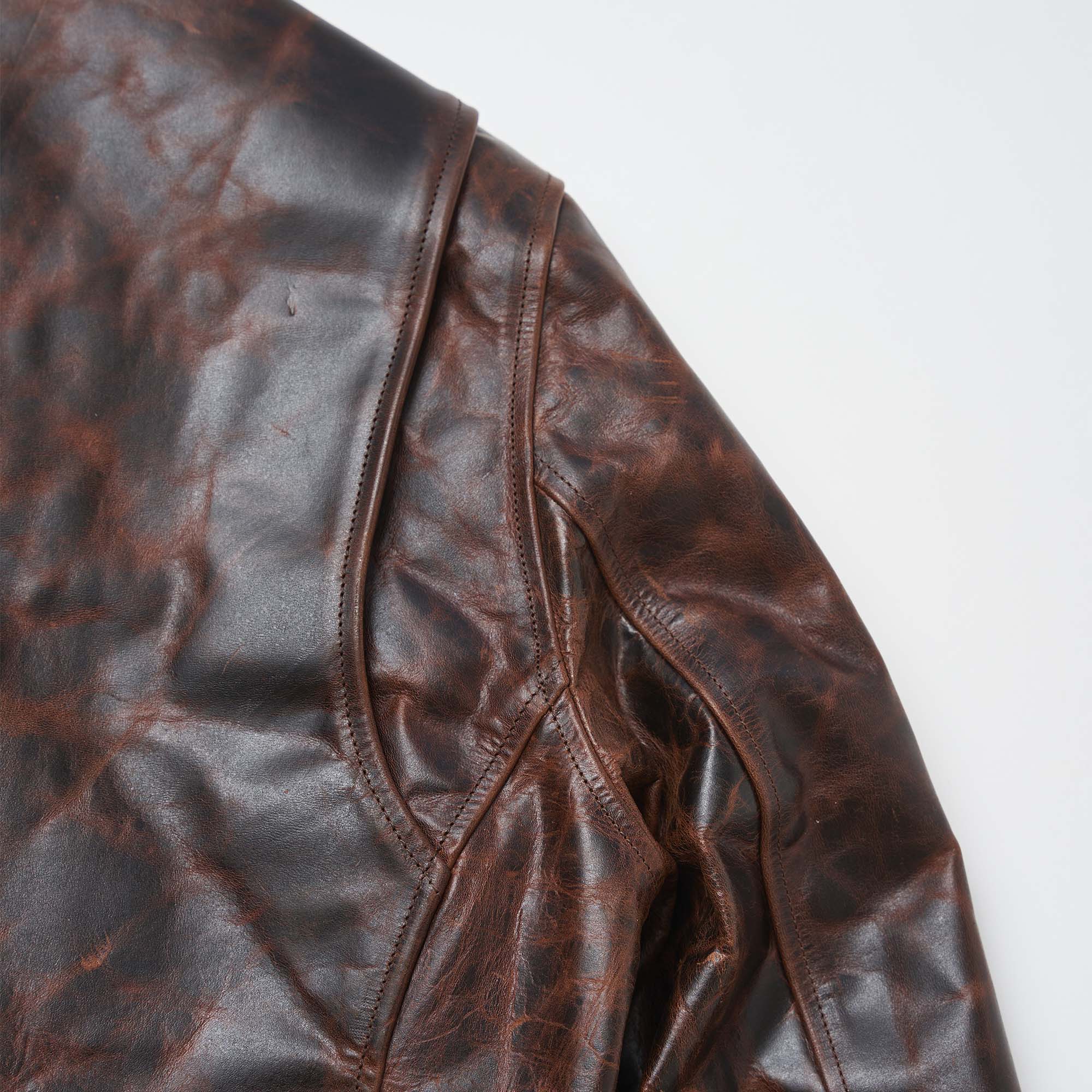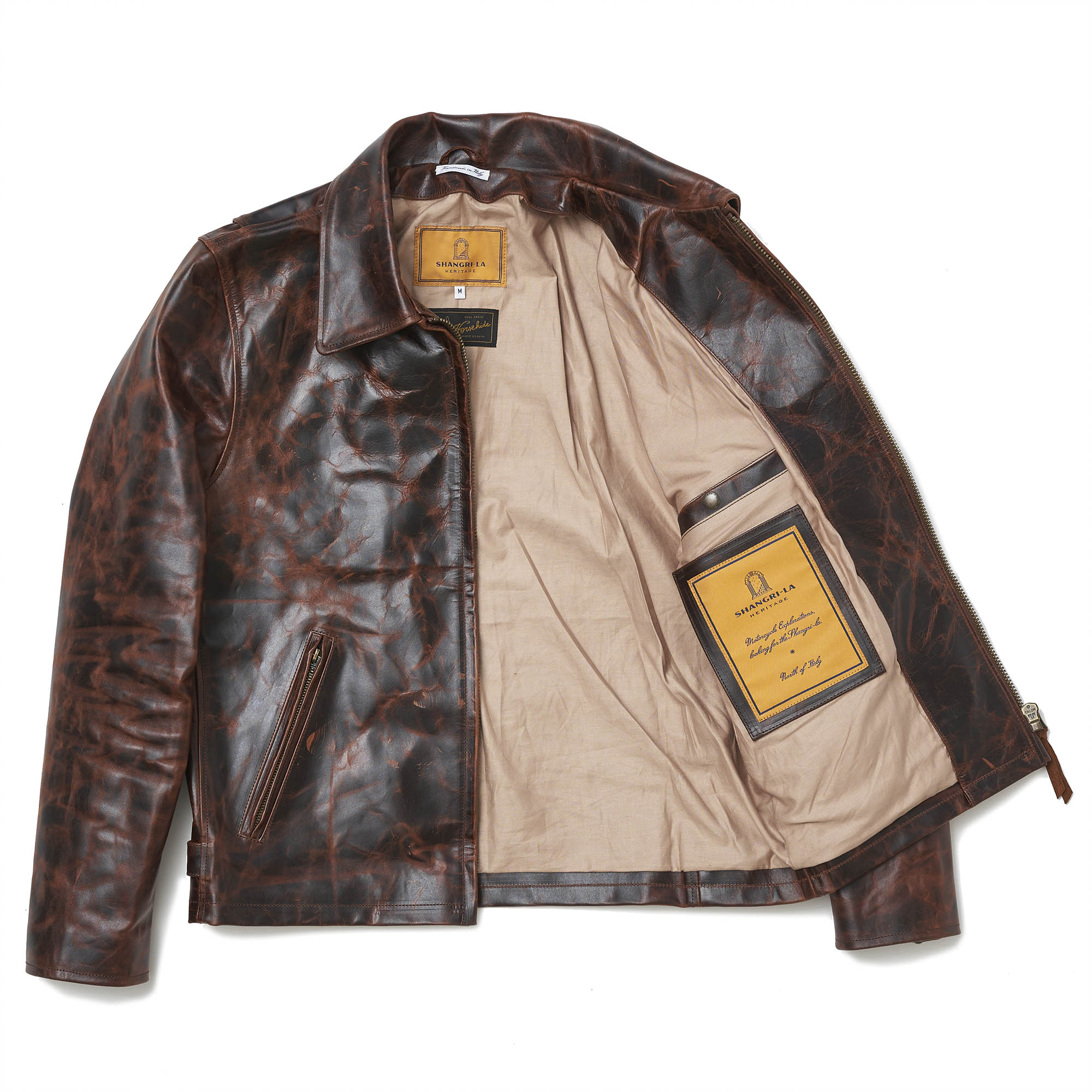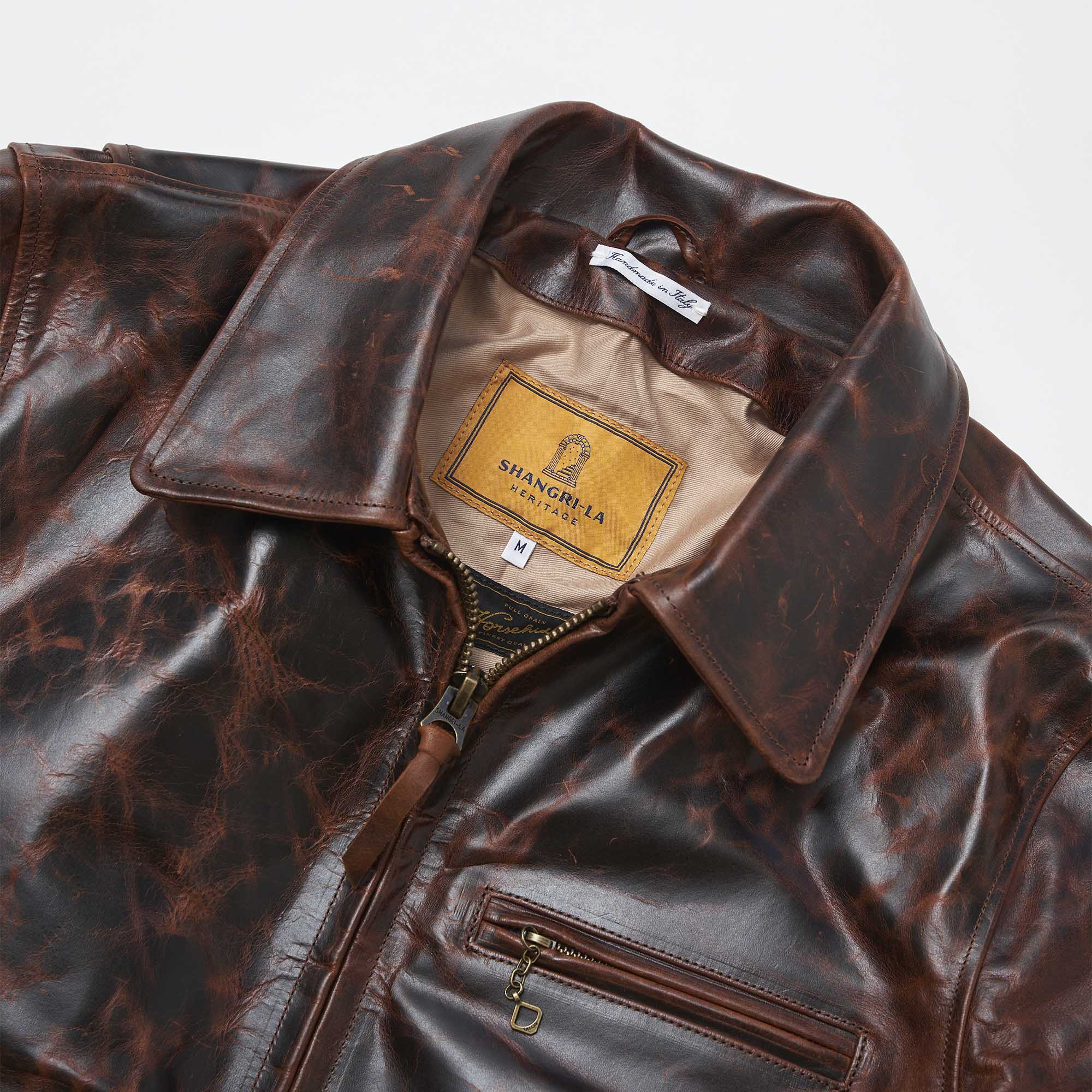 Inspired by late 40s Sport jackets and revisited with a unique Italian touch, the “Varenne” Whiskey Horsehide represents an authentic garment made of Front Quarter Pull-up Horsehide by Charles F. Stead, one of the oldest tanneries in the UK (since 1890s in Leeds, United Kingdom).