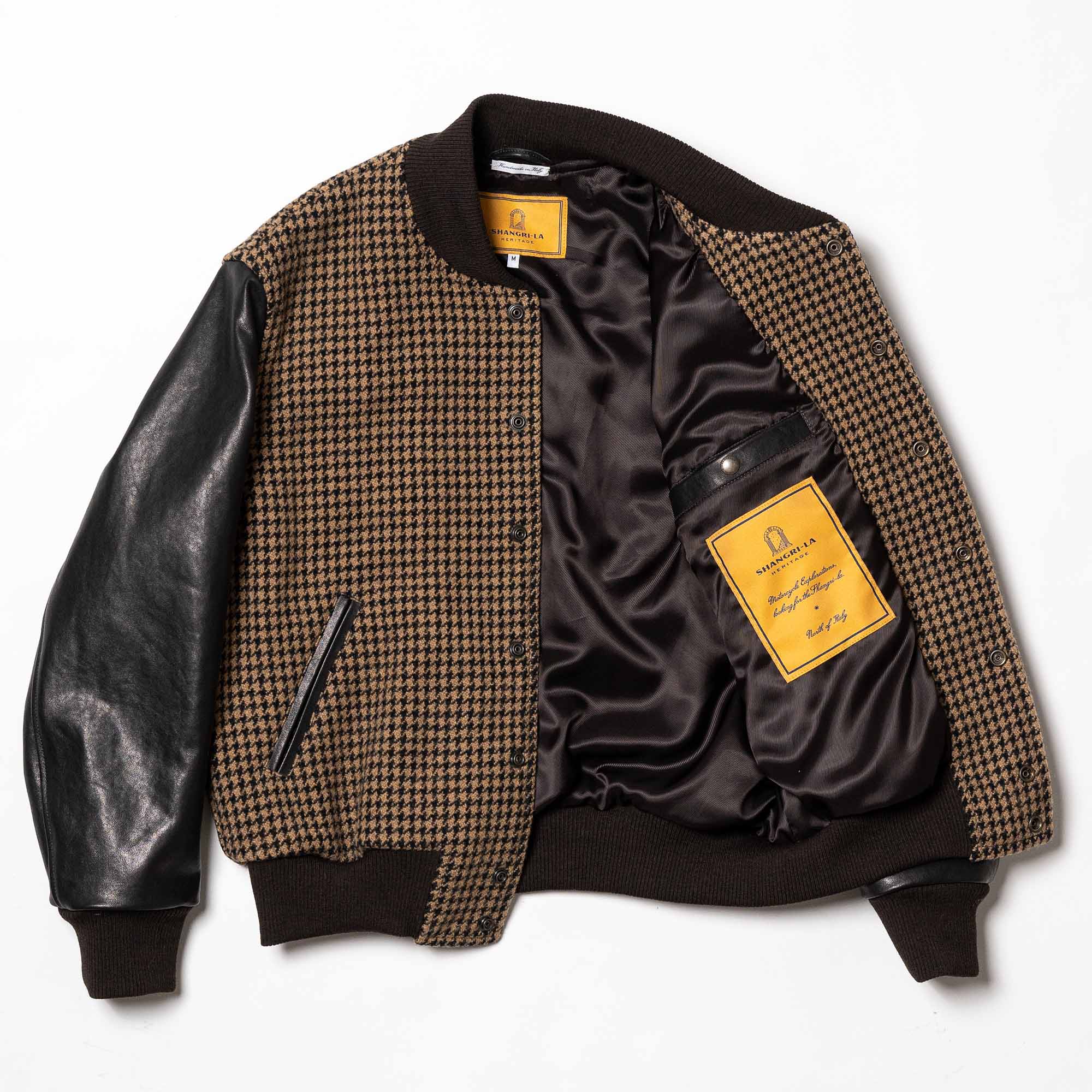 Inspired by early 1930s Varsity jackets from Ivy League schools and Car Clubs and revisited with a unique Italian touch, the “Varsity” Wool Jacket represents an authentic garment made of heavy Italian Pied de Poule Wool 22 Oz with leather sleeves in vegetable tanned Lambskin from Tuscany (Italy).